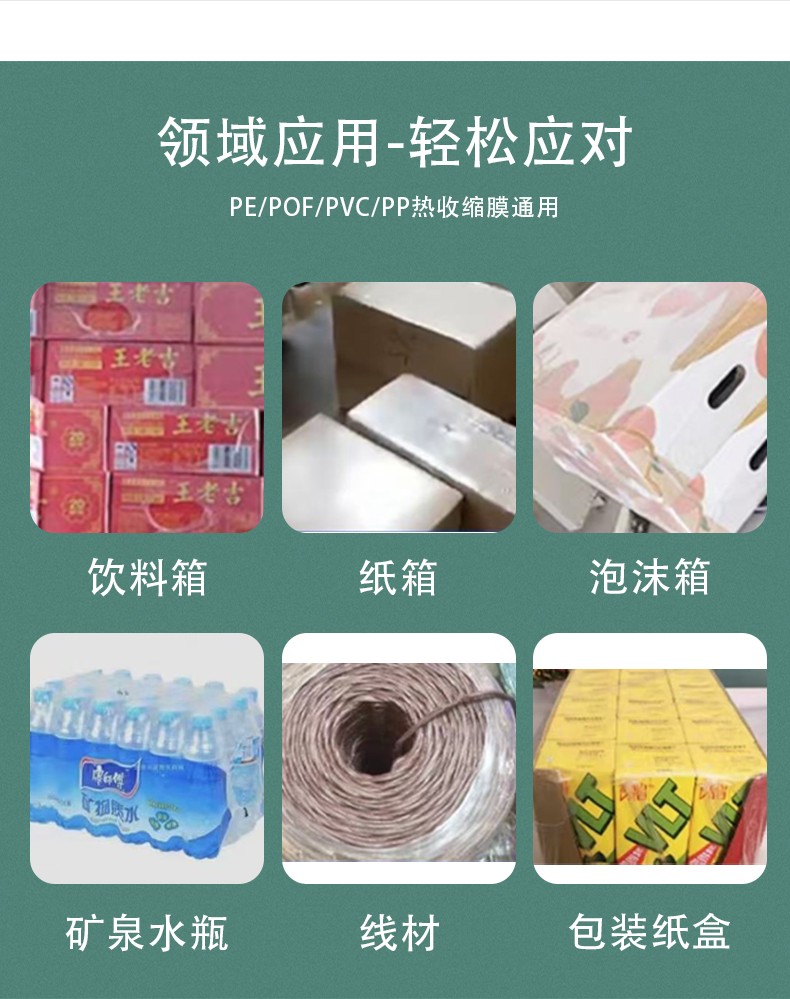 產(chǎn)品經(jīng)輸送帶進(jìn)入設(shè)備后,薄膜被自動(dòng)套在產(chǎn)品外部,通過電熱絲高溫封切形成袖口狀包裝,隨后進(jìn)入熱收縮通道,利用高溫使薄膜均勻收縮,緊貼產(chǎn)品表面,完成 “套膜 - 封切 - 熱收縮” 三步包裝流程。